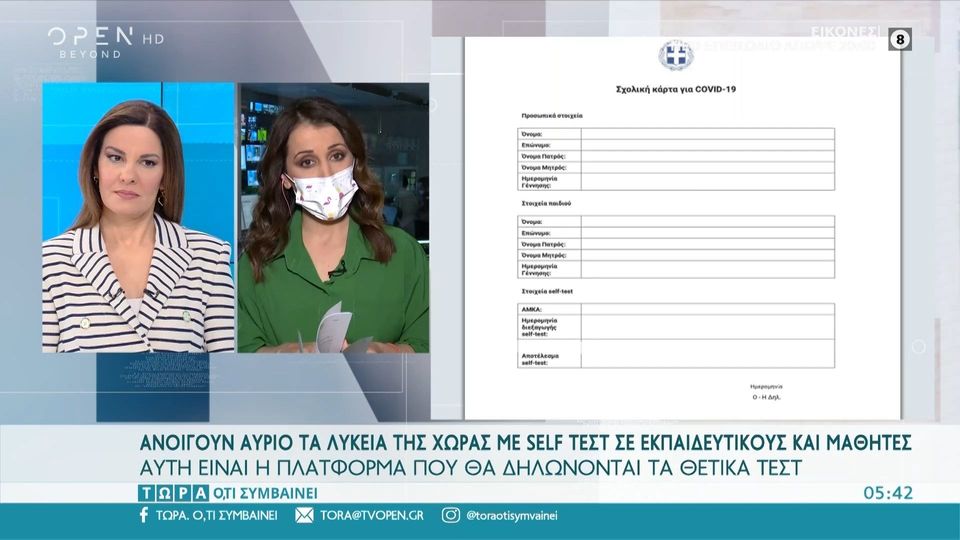 Γνωρίζετε περιπτώσεις που να συμβαίνει αυτό επανειλημμένα στον ίδιο μαθητή π.χ. Σειρά επαγγελματιών, καθώς οι μαθητές, πρέπει να υποβάλλονται ανά τακτά χρονικά διαστήματα σε self test. Υπάρχει ένα κενό στο πρωτόκολλο. Εάν το αποτέλεσμα του αυτοδιαγνωστικού ελέγχου είναι αρνητικό, εκδίδεται από την πλατφόρμα σχολική κάρτα αρνητικού. Τα self test είναι πλέον υποχρεωτικά στους περισσότερους τομείς της χώρας με τους μαθητές να καλούνται να συμπληρώσουν την σχολική κάρτα.